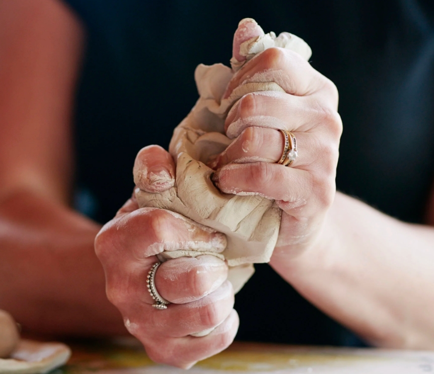 This workshop will guide you through an exploration of clay and the felt sense (Peter Levin). This process aims to develop the felt sense of touch through the hands and to connect to deeper layers of you and your body. You will be led through a non-verbal mindful process, that will enable you to connect with the earthen, forgiving and yielding clay. You will be supported to find what touch, text, pressure, movement or holding feels nourishing and right for you at any given moment to slowly allow a 3D object to emerge. Reflection of the process will follow to integrate your experience.